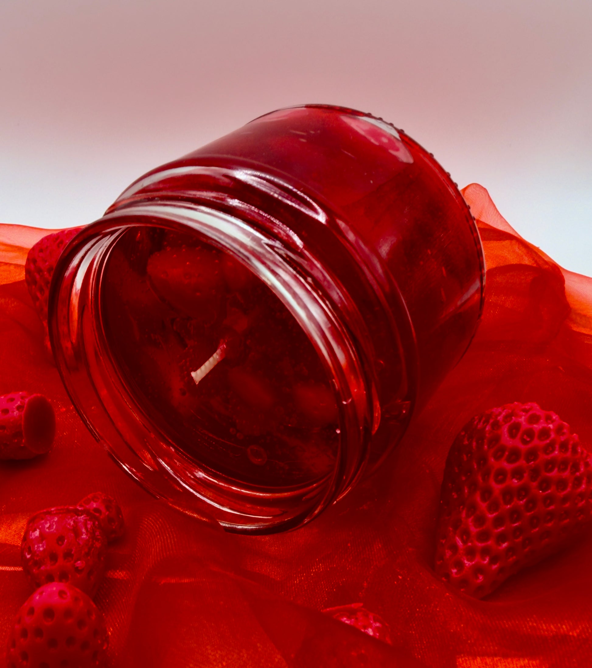 Verwöhne deine Sinne mit dem zauberhaften Aroma unserer handgefertigten Erdbeermarmeladenkerze. Jede Kerze wird liebevoll aus hochwertigem Gel- und Sojawachs gegossen und hüllt dein Zuhause in einen sanften, süßen Erdbeerduft, der an frische, sonnengereifte Erdbeeren erinnert.