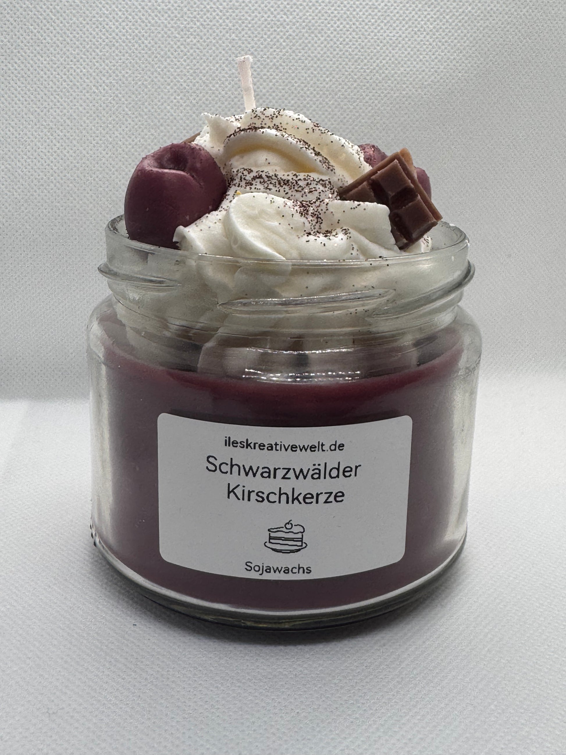 Erlebe den Zauber des Schwarzwaldes und verleihe deinem Zuhause eine wohlige Atmosphäre mit unserer handgefertigten Schwarzwälder Kirschkerze. Diese besondere Duftkerze, aus hochwertigem Soja-wachs gegossen, versprüht ein verlockendes Aroma von reifen Kirschen und einem Hauch Schokolade.