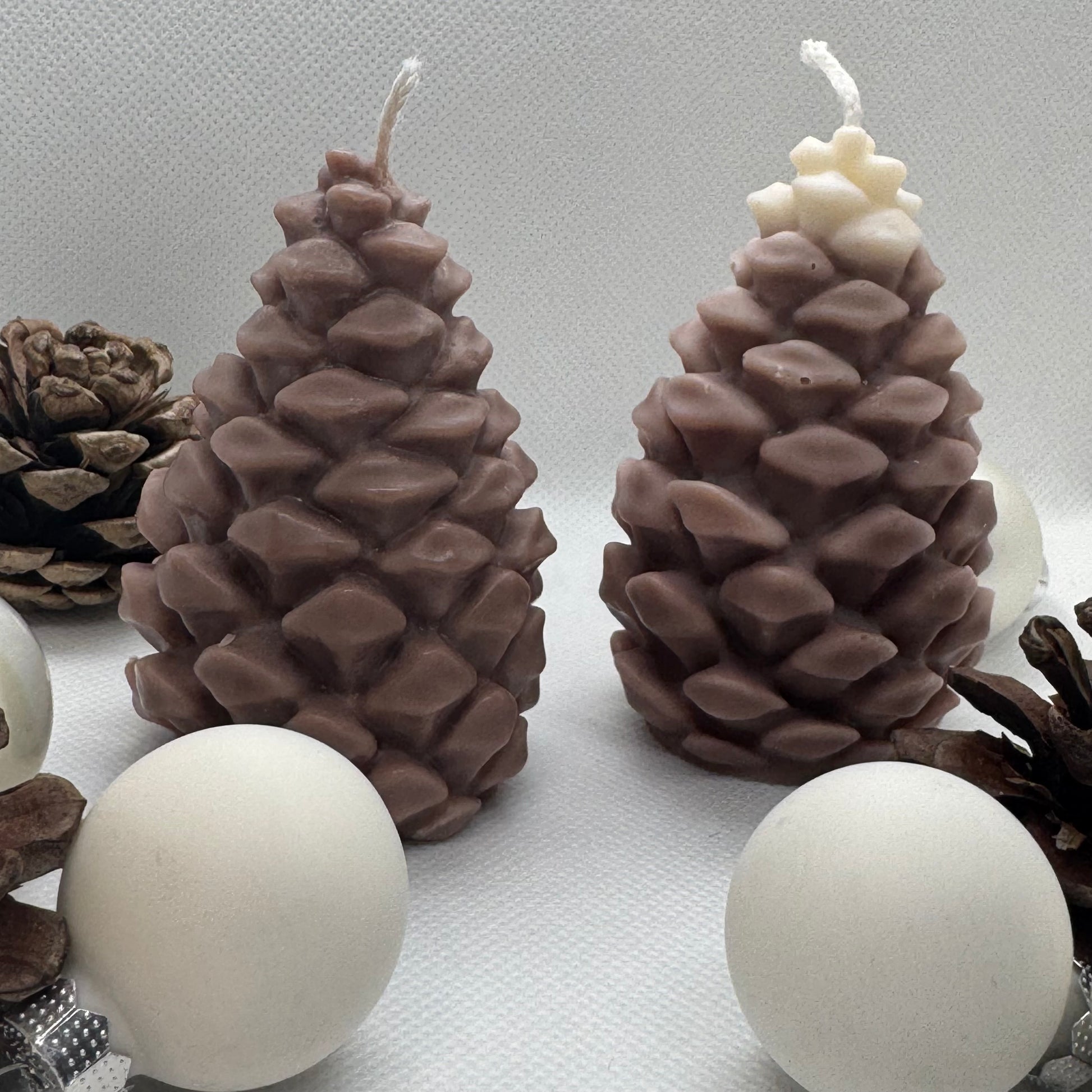 ringe die winterliche Atmosphäre in dein Zuhause mit unserer handgefertigten Tannenzapfenkerze aus Sojawachs. In zwei wunderschönen Varianten – ein warmes Braun oder Braun mit einer eleganten weißen Spitze – verströmt diese Kerze den erfrischenden Duft von Tannen und erinnert an gemütliche Spaziergänge im Wald.